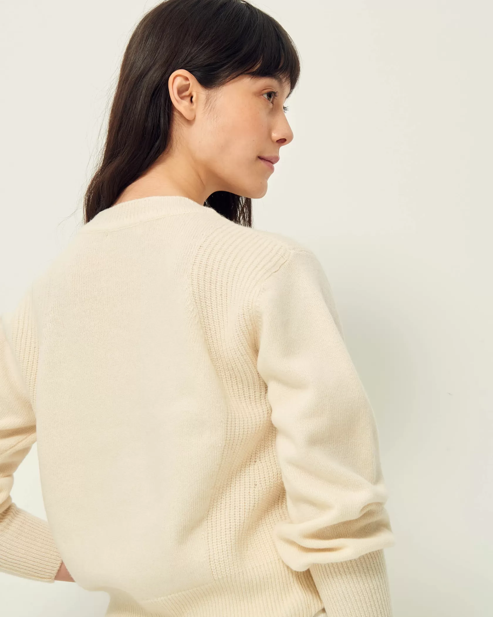 Pull court ajusté en maille point jersey et détails de côtes perlés aux emmanchures, tricoté en Italie.
