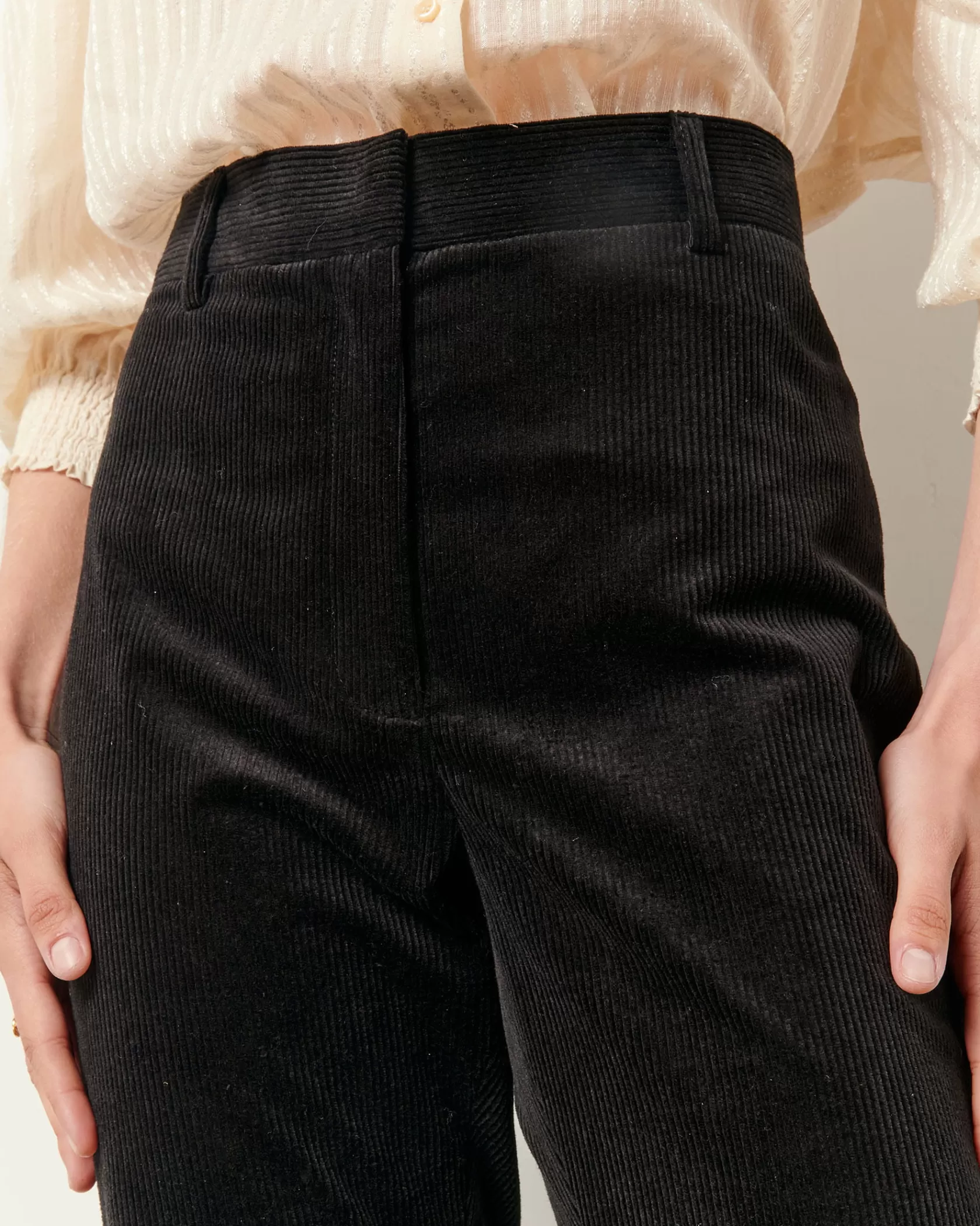 Pantalon droit taille haute en velours côtelé 300 raies.
