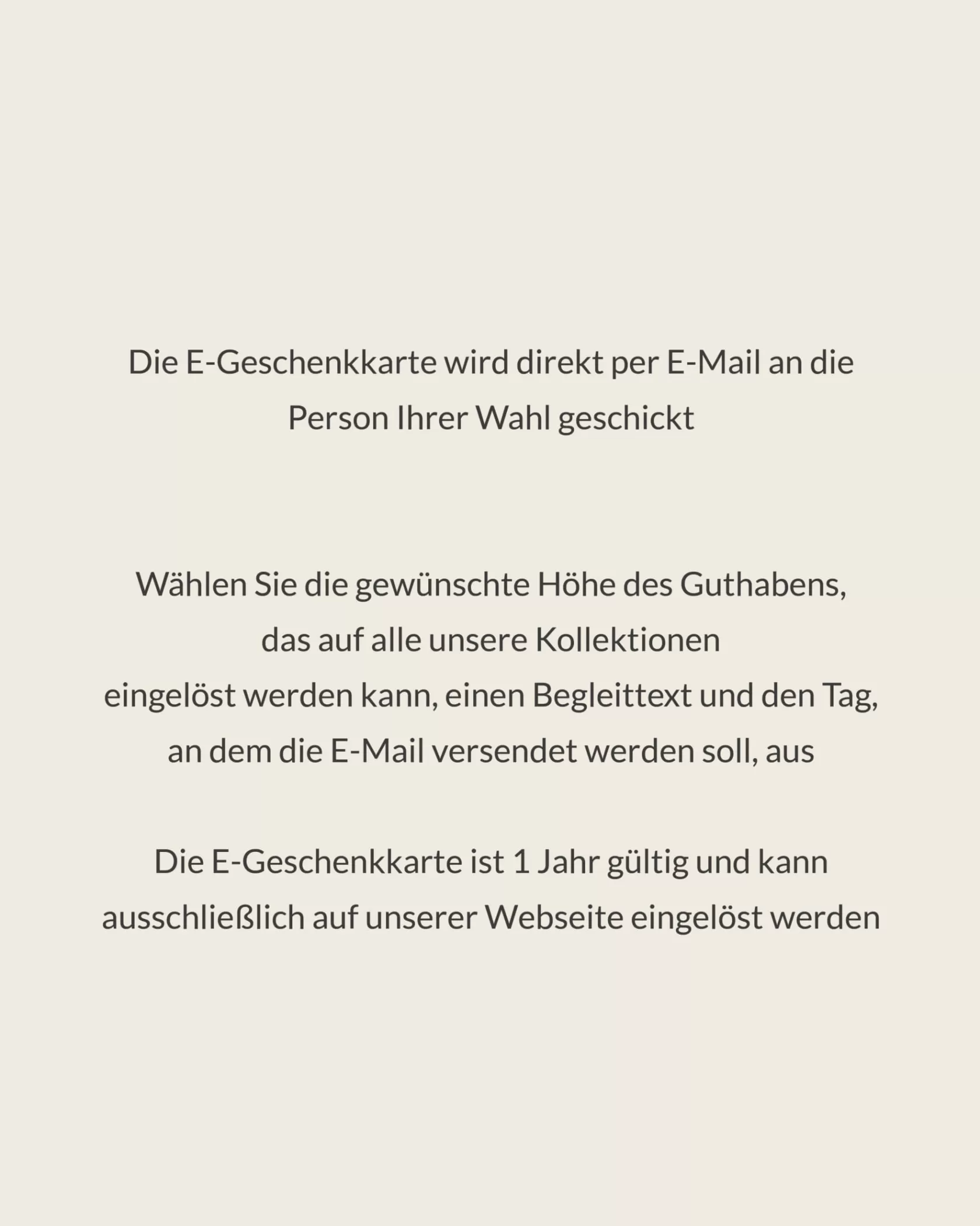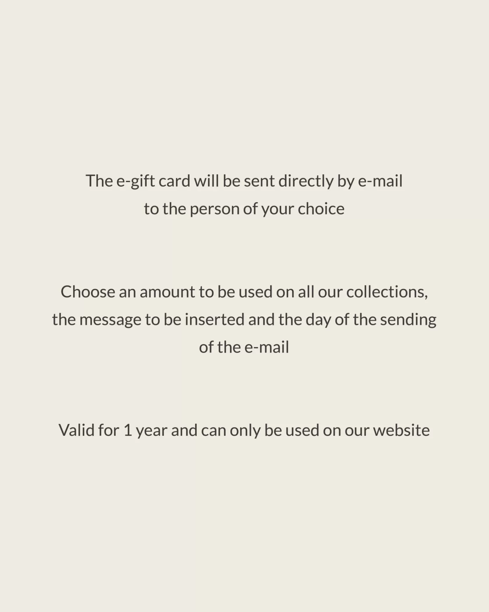 - Choisissez un montant à valoir sur toutes nos collections, le message à insérer et le jour de l’envoi de l’e-mail