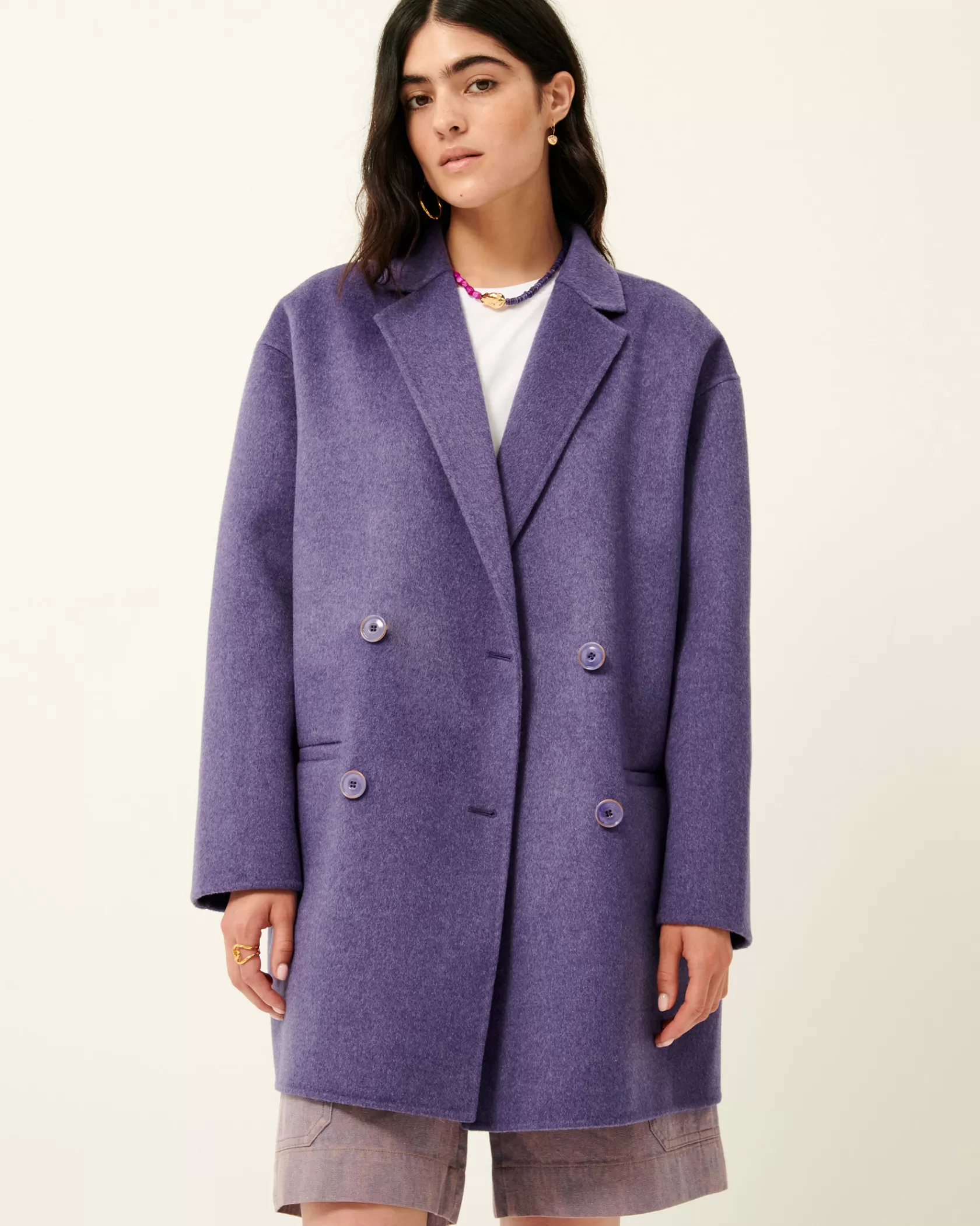 Manteau mi-long à double boutonnage en double tissage finition velvet.