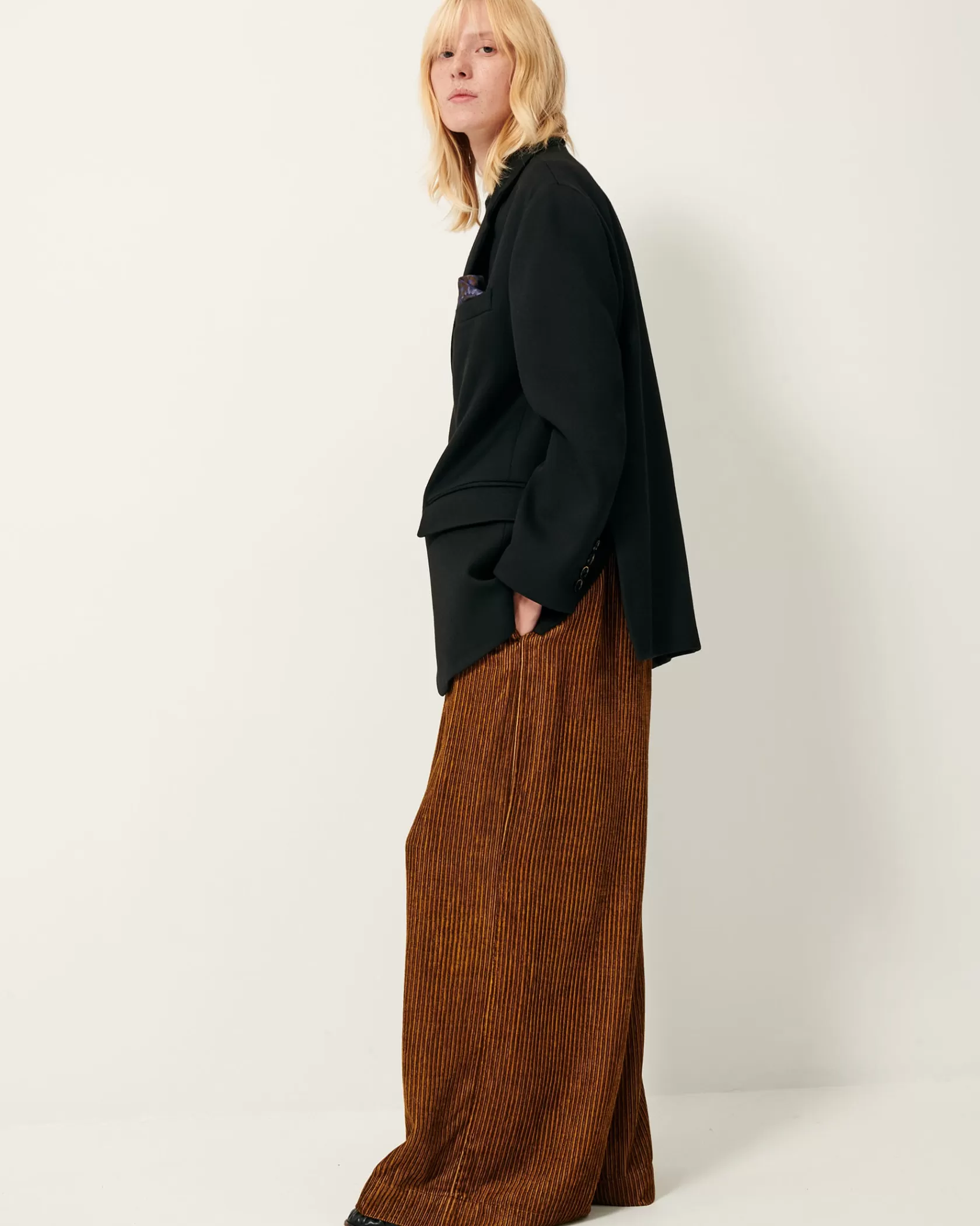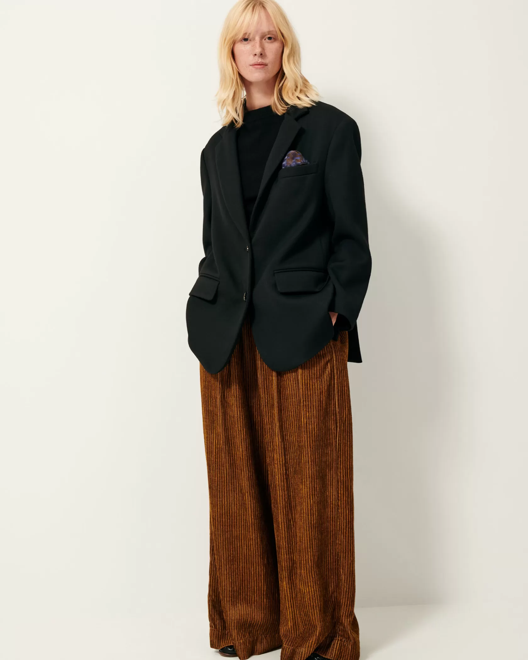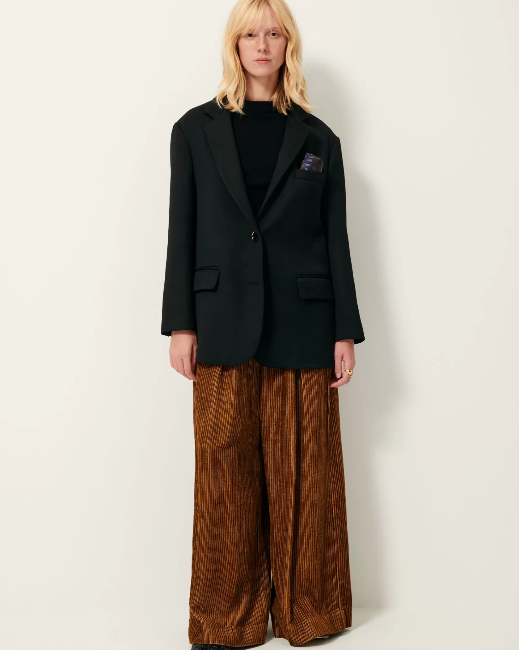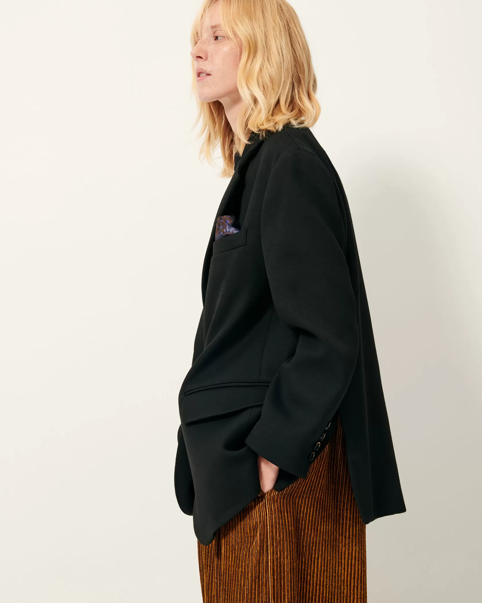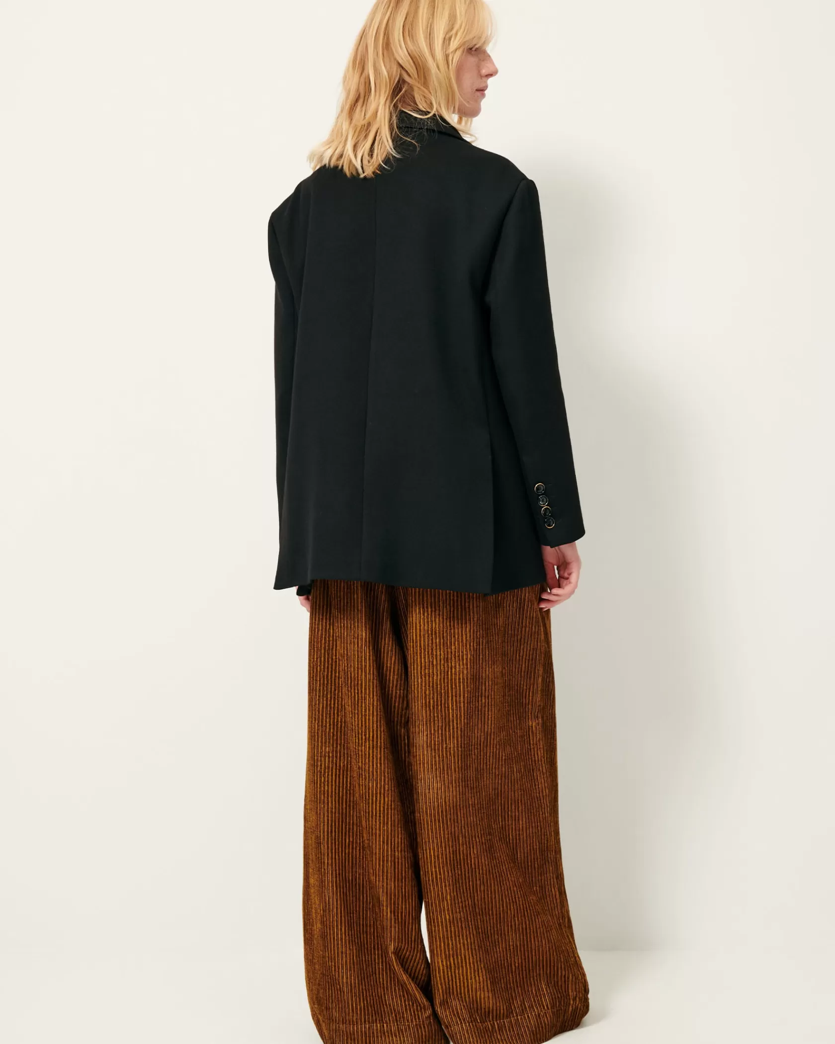 Veste de costume oversize en gabardine souple tailoring à armure nattée, tissée au Portugal.